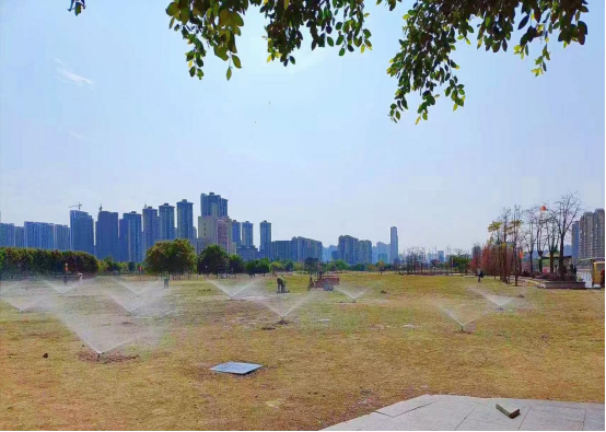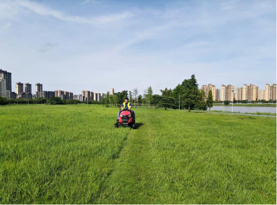 在高效推進綠化管護的同時,管護項目持續優化人機配合作業。一方面,機械打草替代傳統人工作業,每日減少4人次投入,作業效率提升近30%;另一方面,配合智能噴淋系統,精準灌溉抑塵,避免積水爛根,同時控制濕度、杜絕蚊蟲孳生溫床,實現護綠與防蚊“一舉兩得”。