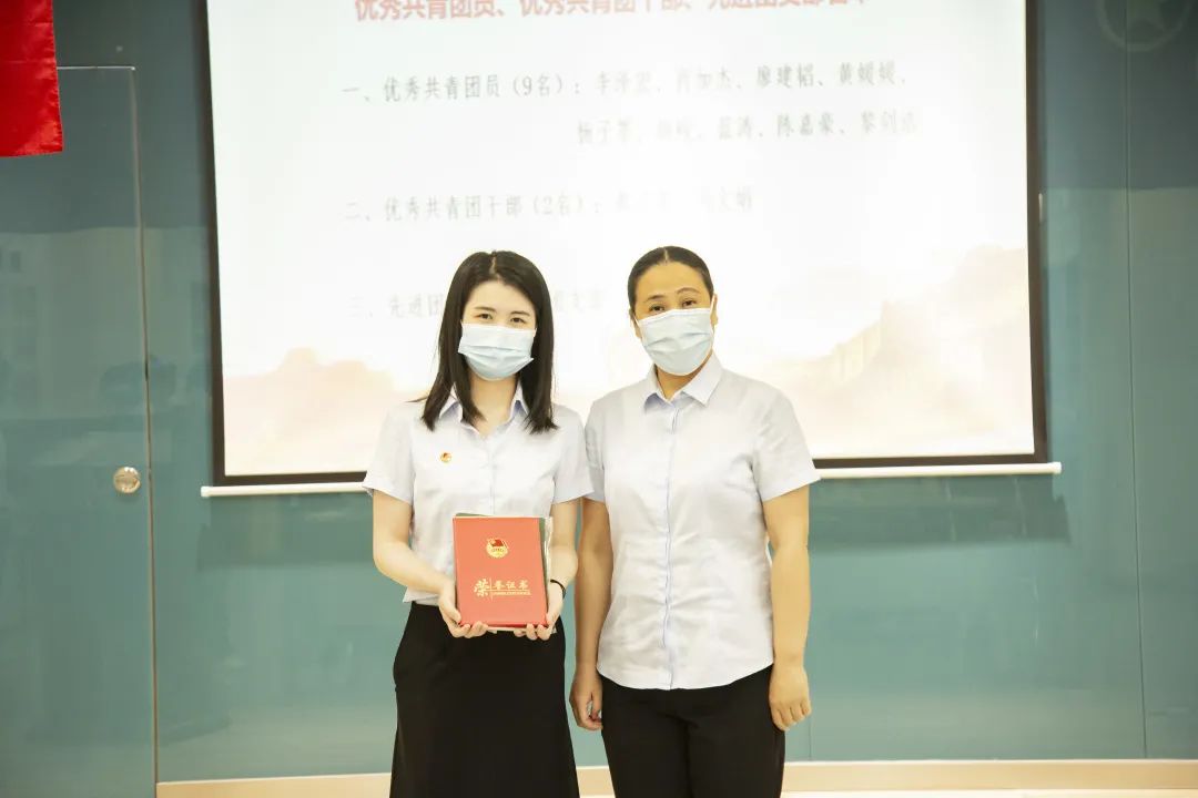 公司團委書記曾紹敏宣讀表彰決定,授予李澤宏等9名同志為“優秀共青團員”榮譽稱號,授予黃潔瑩、馮文娟2名同志為“優秀共青團干部”榮譽稱號,授予營銷團支部“先進團支部”榮譽稱號。鼓勵他們珍惜榮譽、再創佳績,并積極發揮示范引領作用;勉勵廣大青年員工們以先進典型為榜樣,踔厲奮發、砥礪篤行,立足崗位、建功立業。大會還為超齡離團青年舉行離團儀式,重溫入團誓詞,為他們贈送黨章、團員筆記本和精美小禮品。