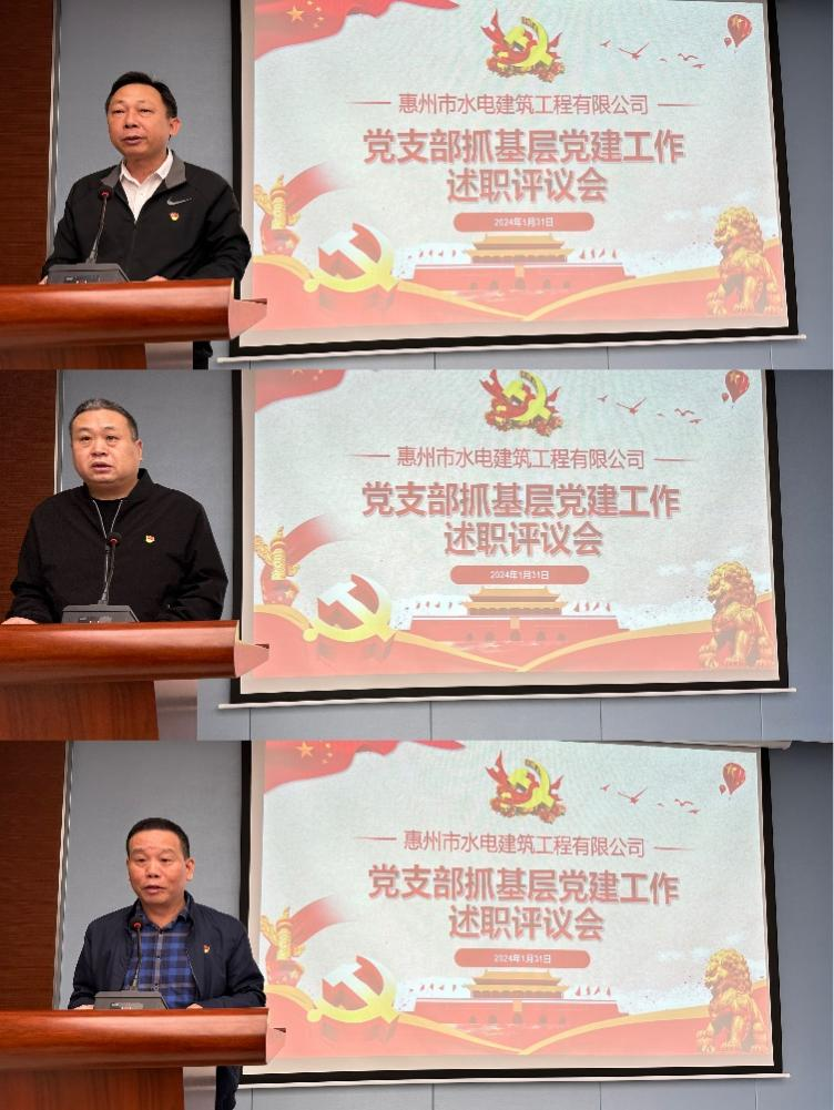 會上,二分公司黨支部、三分公司黨支部、房建分公司黨支部等基層黨組織書記依次進行現場述職,客觀總結過去一年黨建工作的經驗和成效,對工作中存在的問題進行查擺,并明確了2024年的工作思路和工作目標。全體參會人員根據述職情況和日常工作表現,對各黨支部書記進行了評議打分。。