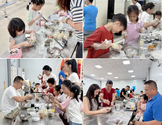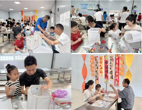 活動(dòng)現(xiàn)場(chǎng),22組家庭化身為“美食工匠”,開(kāi)啟了冰皮月餅DIY之旅,從揉面、包餡到壓模,親子間的默契協(xié)作下,一枚枚印有“平山自來(lái)水廠”“城南水塔”“水泥船泵房”等公司發(fā)展史上標(biāo)志性建筑物圖案的月餅在掌心悄然成型。在活動(dòng)的另一側(cè),二十余盞創(chuàng)意燈籠正悄然點(diǎn)亮,職工家庭以公司發(fā)展歷程為靈感,利用材料包中的竹篾、彩筆等素材,設(shè)計(jì)出“惠東供水60周年”“中秋快樂(lè)”等特色燈籠,將對(duì)企業(yè)發(fā)展的美好祝福融入其中。最終,所有家庭自制的月餅和燈籠作為活動(dòng)紀(jì)念品被帶回家中,更成為傳遞企業(yè)溫情的獨(dú)特載體。